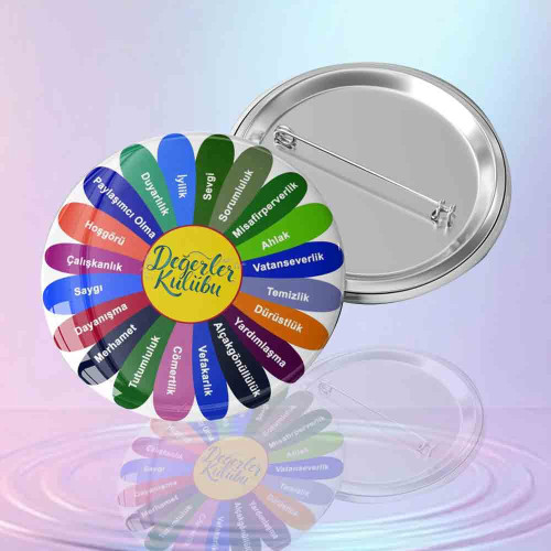 Etiketler: rozet, değerler kulübü, değerler eğitimi, ahlak, saygı, sevgi, sorumluluk, dürüstlük, vatanseverlik, motivasyon, okul, ödül, papatya, iğneli, aksesuar, teşvik, kulüp