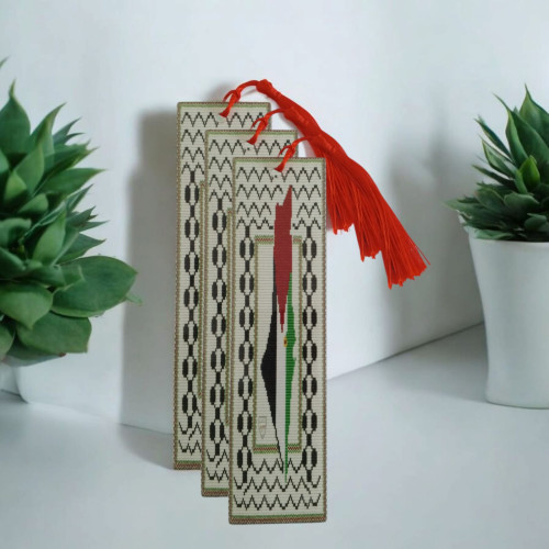 Filistin'in zengin nakış sanatı olan Tatreez motiflerinin ve ulusal kimliğin sembolü Filistin Bayrağı renklerinin birleşimiyle tasarlanmış özel üretim kitap ayracıdır.