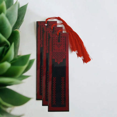 Filistin kültürünün kadim miraslarından olan geleneksel Tatreez (nakış) sanatından ilham alınarak tasarlanmış özel kitap ayracıdır.