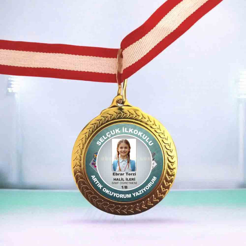 Etiketler: madalya, artık okuyorum yazıyorum, okuma bayramı, 1. sınıf, öğrenci, fotoğrafli, kişiselleştirilmiş, okul, ilkokul, ödül, başarı, altın madalya, kurdeleli, öğretmenli