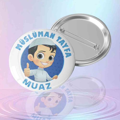 Çocukların dini eğitim süreçlerini daha eğlenceli ve motive edici hale getirmek için tasarlanmış, isme özel iğneli metal yaka rozetidir. Ürün üzerinde takkeli ve neşeli bir çocuk karakteri ile modern bir dil sunan "MÜSLÜMAN TAYFA" ibaresi yer alır. Kuran kursları, değerler eğitimi sınıfları ve Ramazan etkinlikleri için harika bir aidiyet sembolüdür.