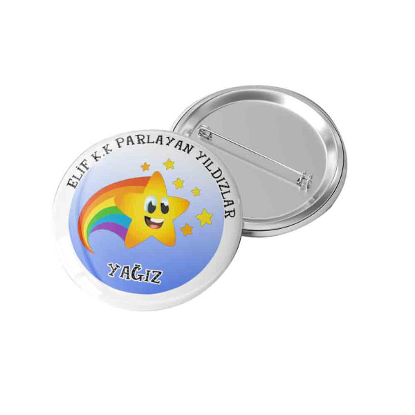 Parlayan Yıldız Anasınıfı Rozeti, minik öğrenciler için eğlenceli ve motive edici bir ödül rozetidir.